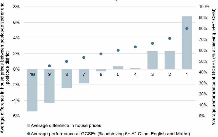 The chart effectively demonstrates that the perceived quality of local schools, as measured by GCSE results, is associated with housing demand and value within specific locations.